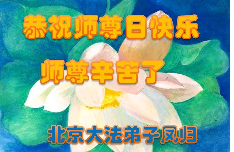 我是北京郊区的老年大法弟子。愿大法弟子尽快的提高上来,愿师父少一些操劳、多一些欣慰! 北京大法弟子庆贺世界法轮大法日!恭祝师尊生日快乐!