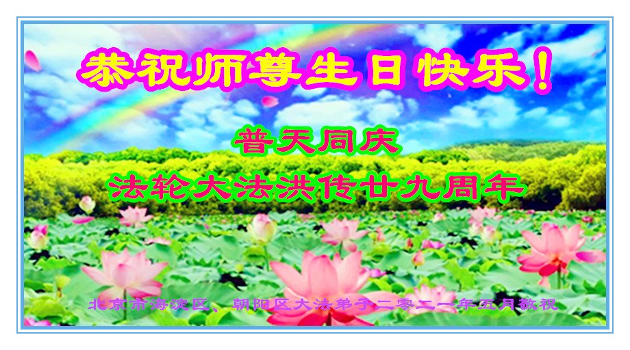 北京市朝阳区、海淀区大法弟子恭贺师尊华诞! 普天同庆法轮大法洪传廿九周年 北京市海淀区、朝阳区大法弟子恭祝师尊生日快乐!