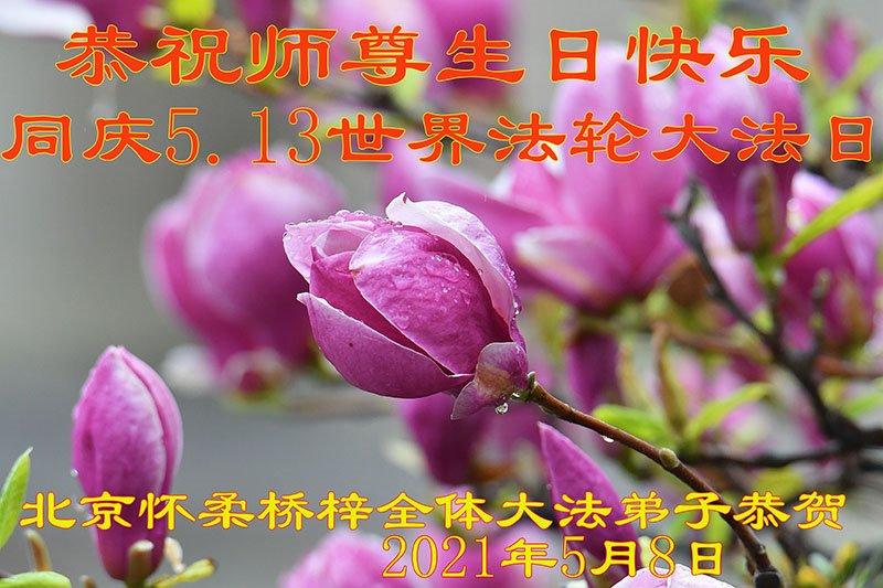 【明慧网二零二一年五月十一日】 北京怀柔桥梓全体大法弟子庆祝世界法轮大法日!恭祝师尊生日快乐!