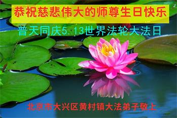 北京市大兴区黄村镇大法弟子庆祝世界法轮大法日!恭祝慈悲伟大的师尊生日快乐!