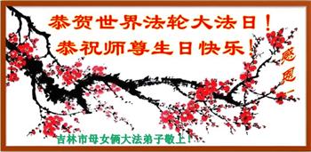 吉林省吉林市母女俩大法弟子恭祝师尊生日快乐!恭贺世界法轮大法日!
