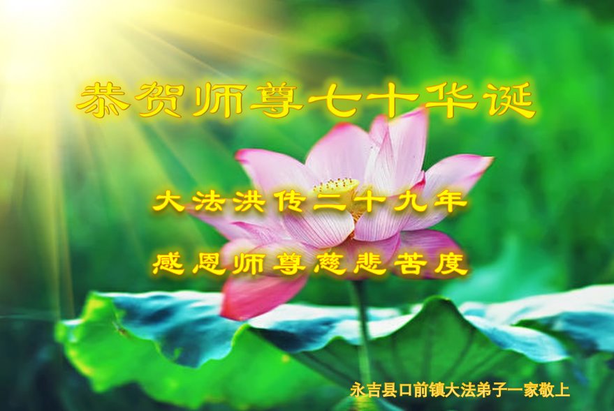 吉林省吉林市永吉县口前镇大法弟子一家恭祝师尊生日快乐!