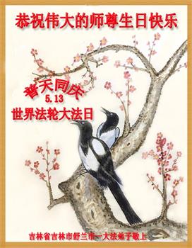 吉林省吉林市两位大法弟子恭贺513世界法轮大法日!