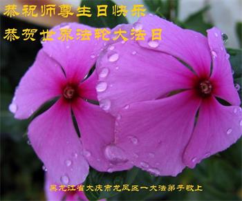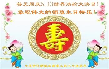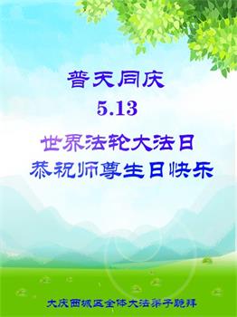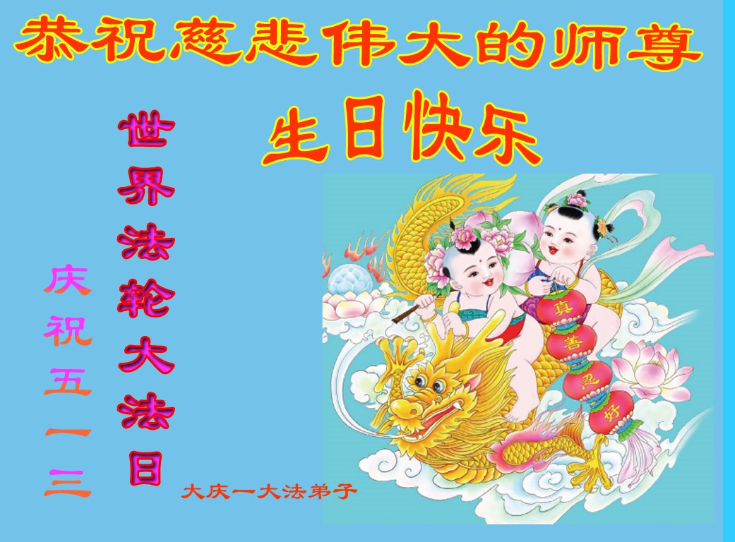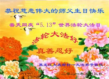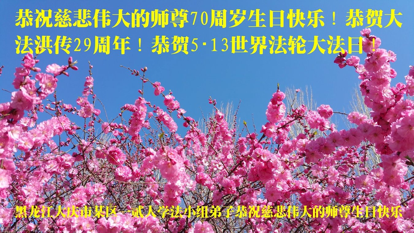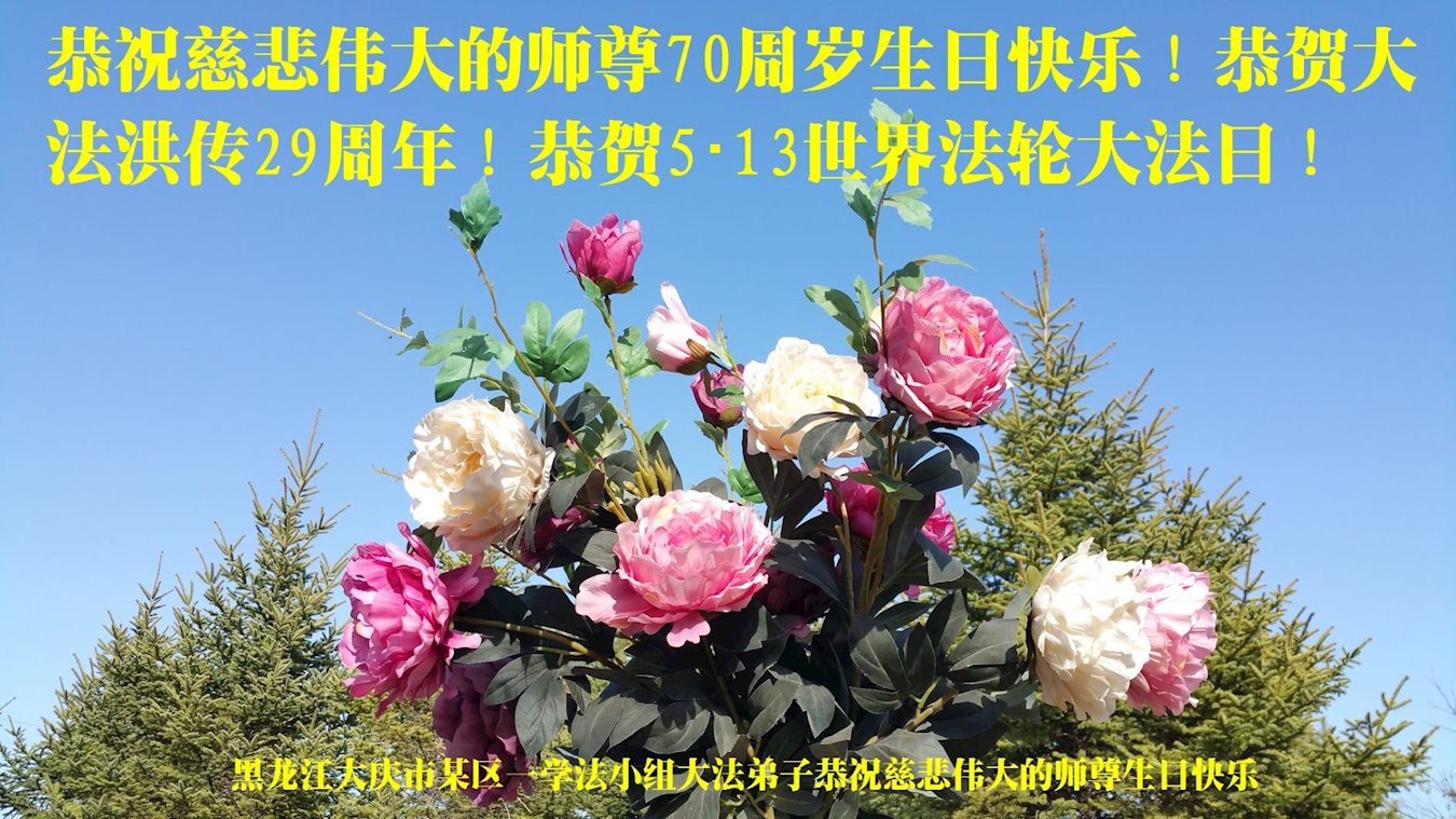 庆祝五·一三世界法轮大法日! 黑龙江大庆市某区一二人学法小组弟子恭祝慈悲伟大的师尊生日快乐!