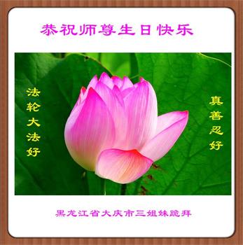 黑龙江省大庆市三姐妹大法弟子恭祝师尊生日快乐!