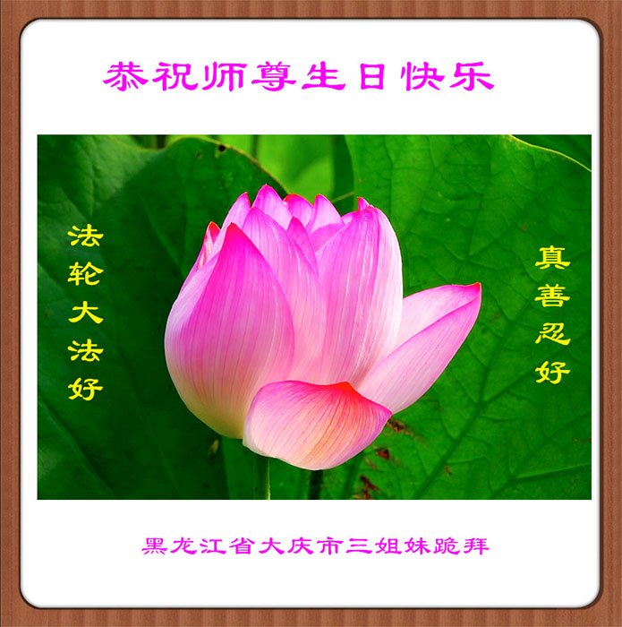 恭祝师父华诞!叩谢师父对宇宙和众生的珍惜!叩谢师父的保护!叩谢师父的苦度! 黑龙江大庆一姐妹俩恭祝师尊生日快乐!庆祝法轮大法洪传29周年!
