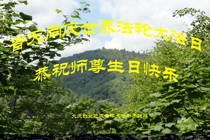 同庆世界法轮大法日! 恭祝师尊生日快乐!同庆世界法轮大法日! 大庆市肇源县古龙镇全体大法弟子合十敬上 黑龙江省大庆市乙烯大法弟子恭贺伟大师父生日快乐!