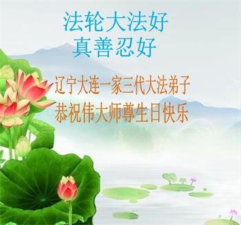 大连一家三位大法弟子恭祝师尊生日快乐!师尊辛苦了!师尊为弟子承受的太多太多了,弟子唯有学好法,精進实修,多救人,让师尊少操一点心,多一点欣慰,谢谢师尊! 合十! 辽宁省大连市大法弟子一家三口与远在外地的母亲恭祝慈悲伟大的师尊七十华诞暨世界法轮大法日!