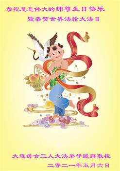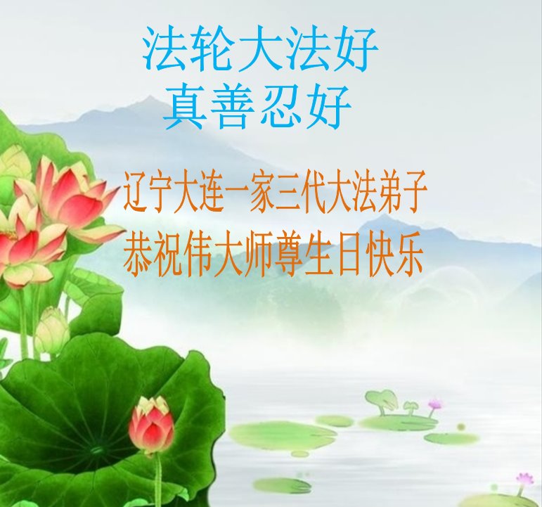 辽宁省大连市母女三人大法弟子恭祝慈悲伟大的师尊生日快乐!暨恭贺世界法轮大法日!