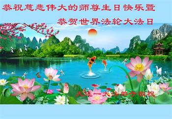 庆祝师父华诞暨世界法轮大法日! 落入尘世久 迷失不知途 师尊洪恩现 度众返家园 辽宁省大连市一学法小组大法弟子恭祝慈悲伟大的师尊生日快乐!