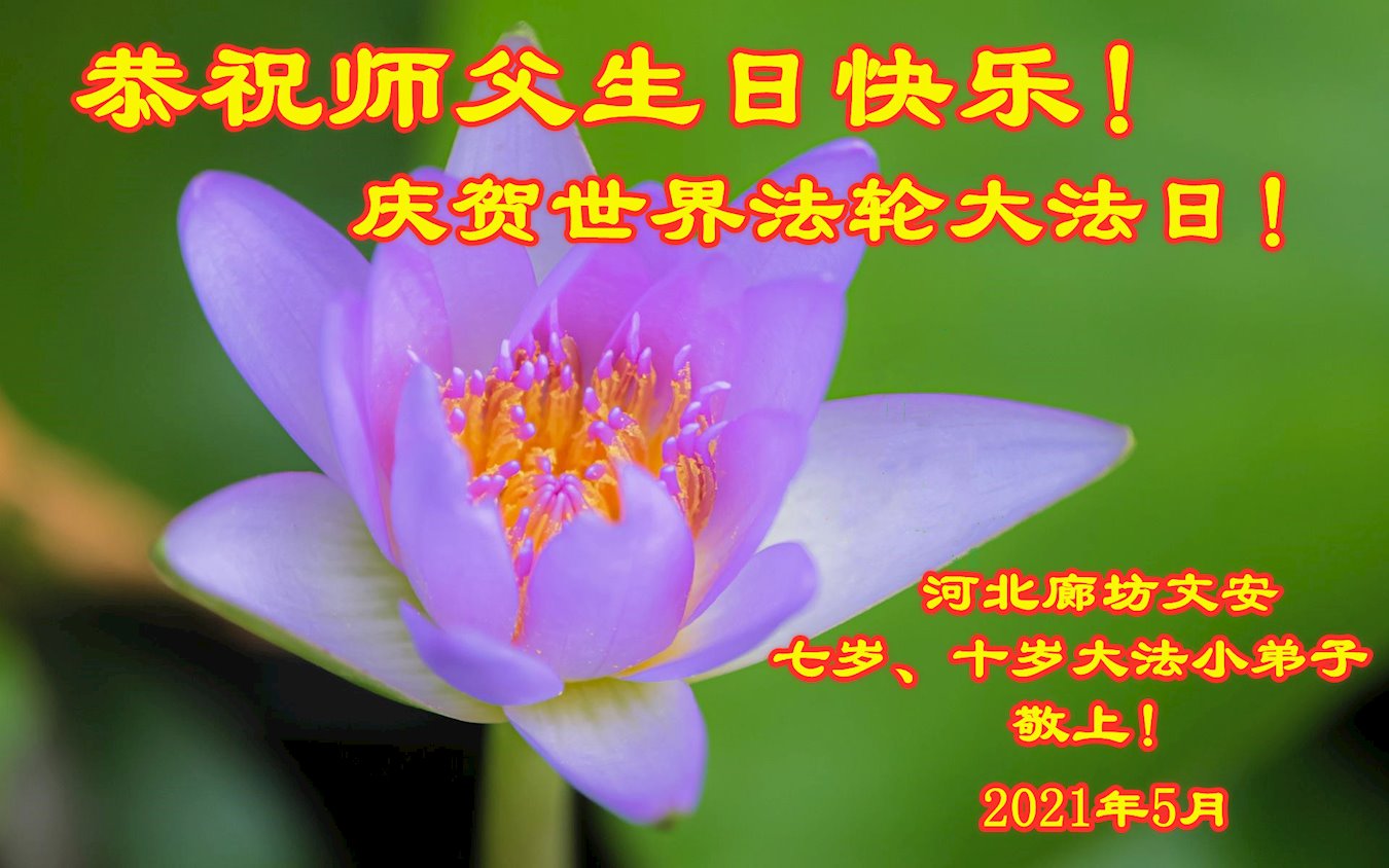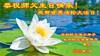 【明慧网二零二一年五月十一日】 吉林省辽源市大法小弟子恭祝师尊生日快乐!恭祝世界法轮大法日!