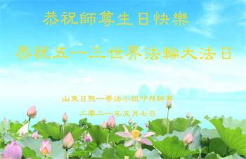 山东日照一学法小组大法弟子恭贺世界法轮大法日暨师尊华诞!