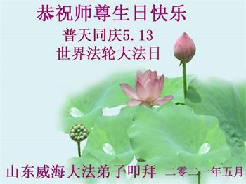 山东省威海一大法弟子恭祝慈悲伟大的师尊生日快乐!普天同庆法轮大法日!