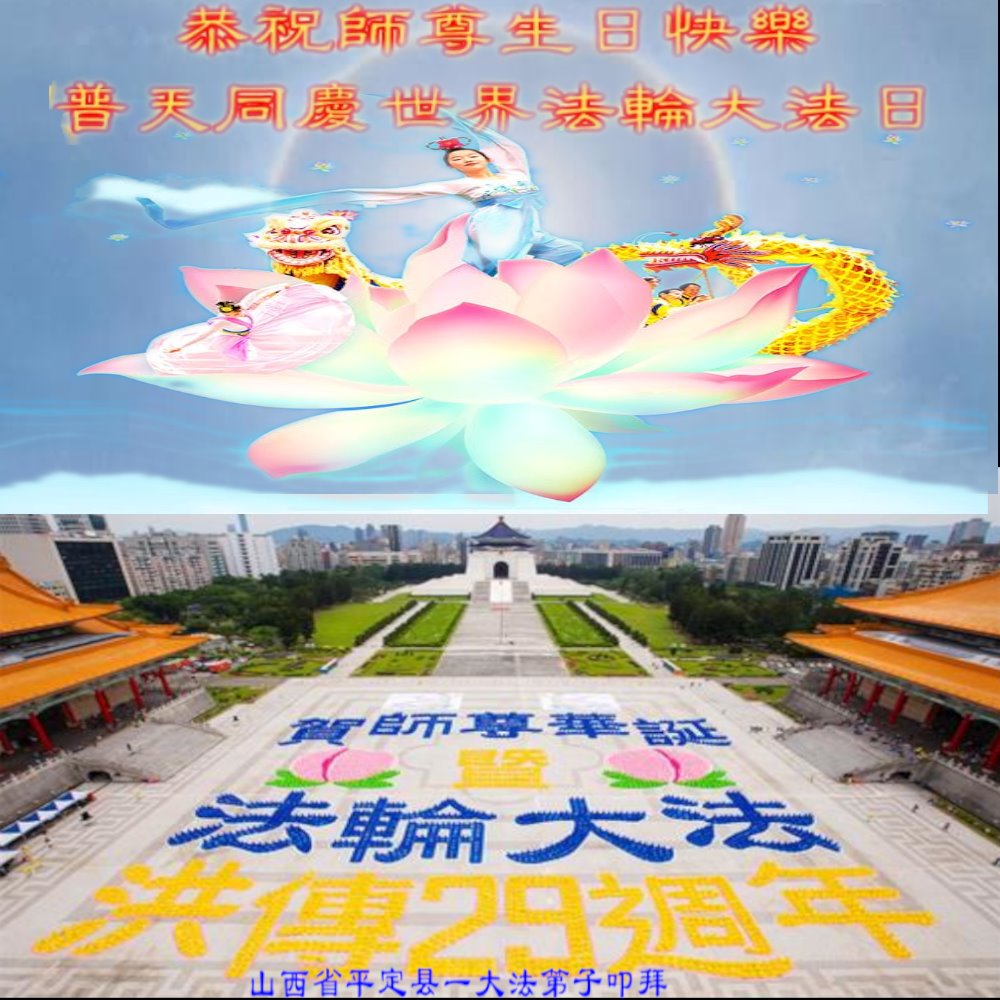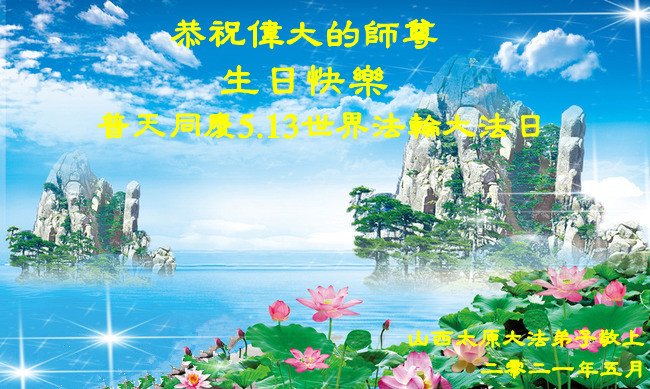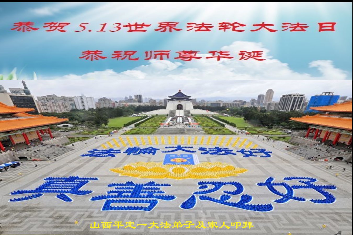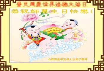 山西阳泉郊区全体大法弟子恭祝慈悲伟大的师尊生日快乐!恭贺5.13世界法轮大法日!