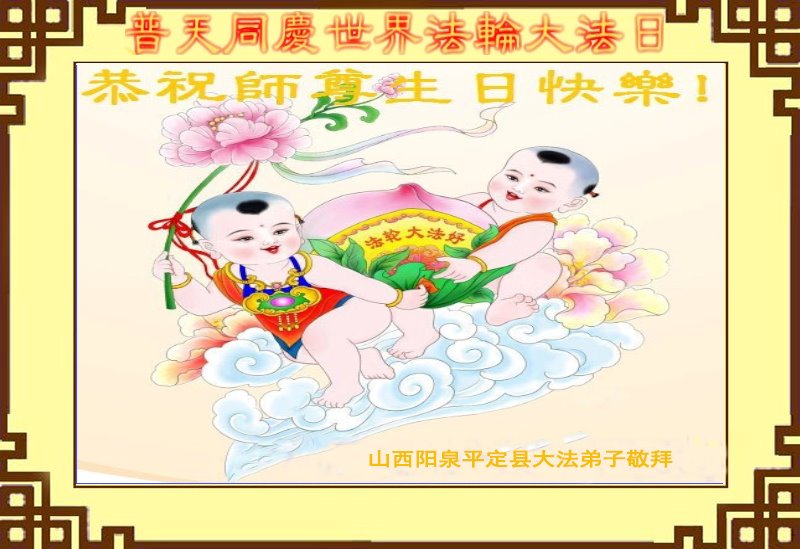 恭贺世界法轮大法日!谢谢师父慈悲救度! 山西省阳泉市平定县一大法弟子和家人恭祝慈悲伟大的师尊生日快乐!