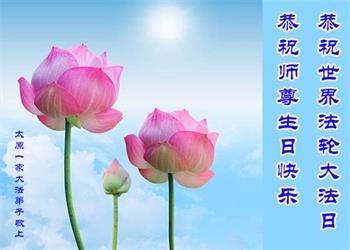山西省太原一家大法弟子恭祝世界法轮大法日!恭祝师尊生日快乐!