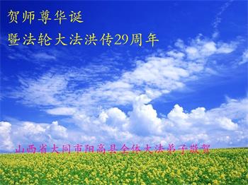 山西大同阳高县全体大法弟子恭贺师尊华诞暨法轮大法洪传29周年!