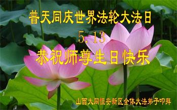 山西大同恒安新区全体大法弟子恭贺世界法轮大法日!恭祝师尊生日快乐!感恩师尊慈悲苦度!