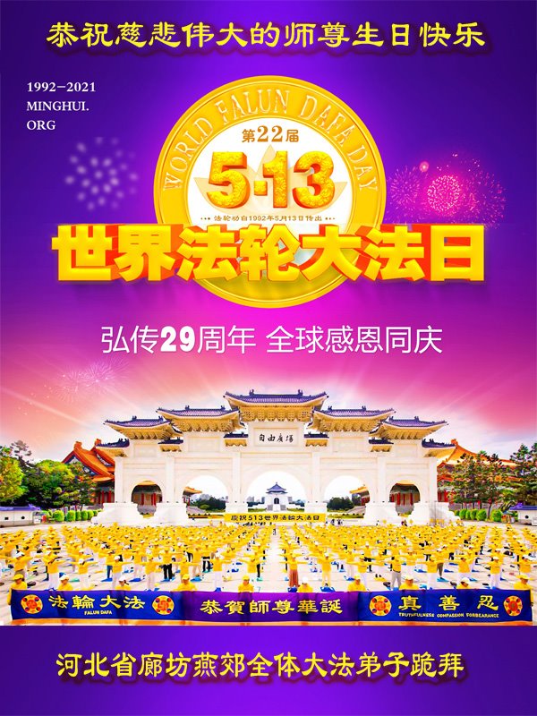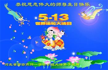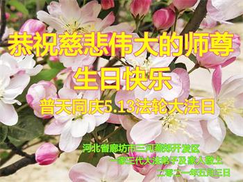 河北省廊坊市燕郊全体大法弟子恭祝慈悲伟大的师尊生日快乐!恭贺5.13世界法轮大法日!