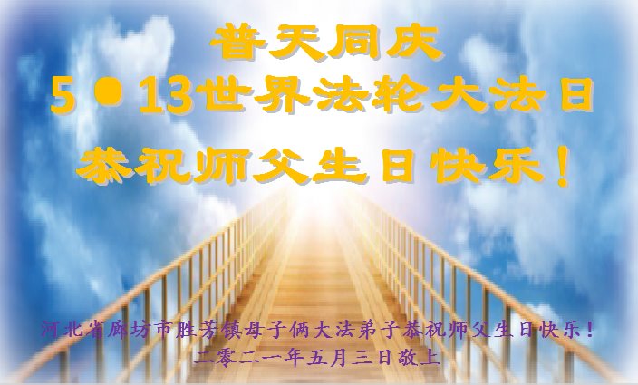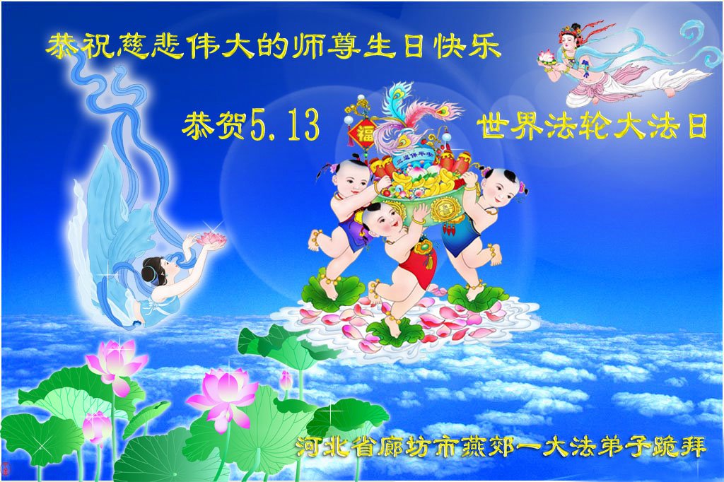 河北省廊坊市燕郊一大法弟子恭祝慈悲伟大的师尊生日快乐!恭贺5.13世界法轮大法日!
