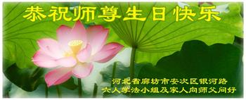 河北省廊坊市安次区一小组大法弟子恭祝师尊生日快乐!