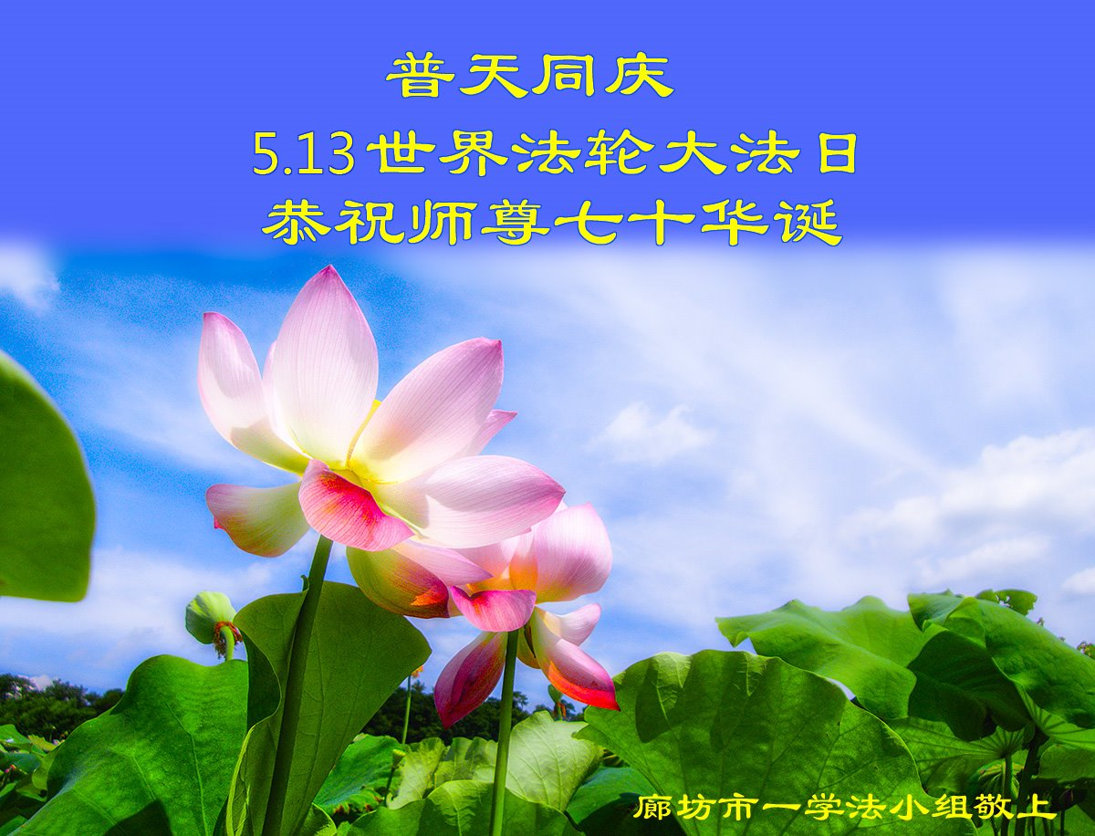 河北省廊坊市一学法小组大法弟子普天同庆513世界法轮大法日!恭祝师尊七十华诞!