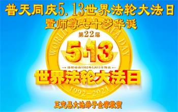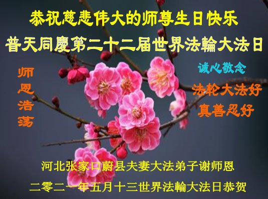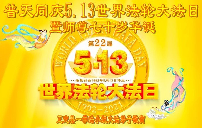 【明慧网二零二一年五月十一日】 河北沧州吴桥县一学法小组大法弟子叩拜师尊恭祝师尊生日快乐!恭祝世界法轮大法日!
