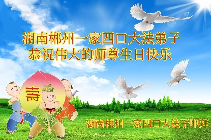 湖南省郴州市一家四口大法弟子恭祝伟大的师父生日快乐!