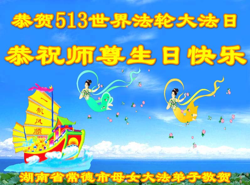 慈悲伟大的师尊您辛苦了!弟子们只有做好三件事才能回报您为众生的承受! 弟子及家人叩拜师尊! 湖南省常德市母女大法弟子恭祝师父生日快乐!恭贺世界法轮大法日!