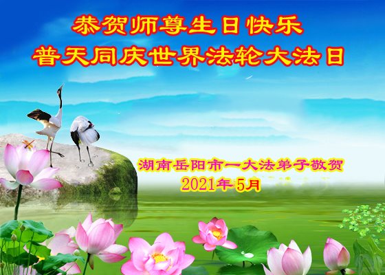 湖南岳阳市一大法弟子恭祝师尊生日快乐!恭贺世界法轮大法日!