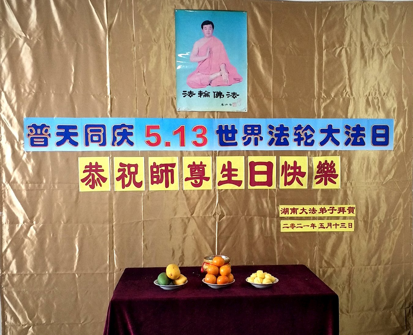 庆祝世界法轮大法日暨法轮大法洪传二十九周年! 湖南省全体大法弟子 二零二一年五月四日 湖南省衡阳市全体大法弟子恭祝慈悲伟大的师尊生日快乐!