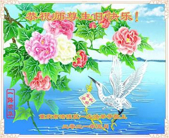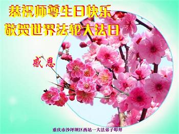 重庆市沙坪坝大法弟子敬上 重庆市沙坪坝区西站一大法弟子恭祝慈悲伟大的师尊生日快乐!
