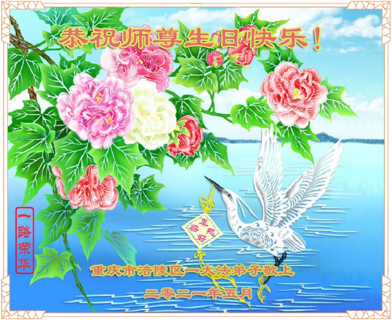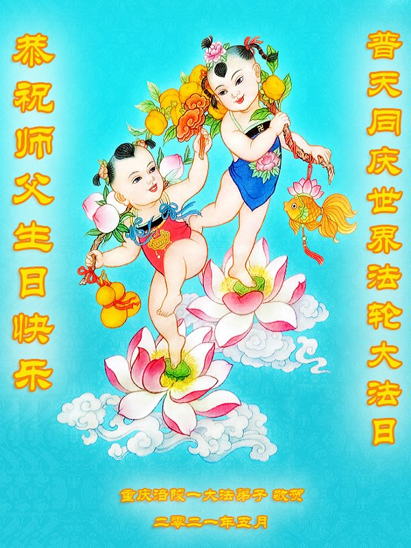 值二零二一年师尊华诞暨法轮大法日22年之际,重庆市涪陵区一片区全体大法弟子恭祝师尊生日快乐!暨法轮大法日! 二零二一年五月三日 重庆市涪陵区一大法弟子恭祝师尊生日快乐!暨世界法轮大法日!