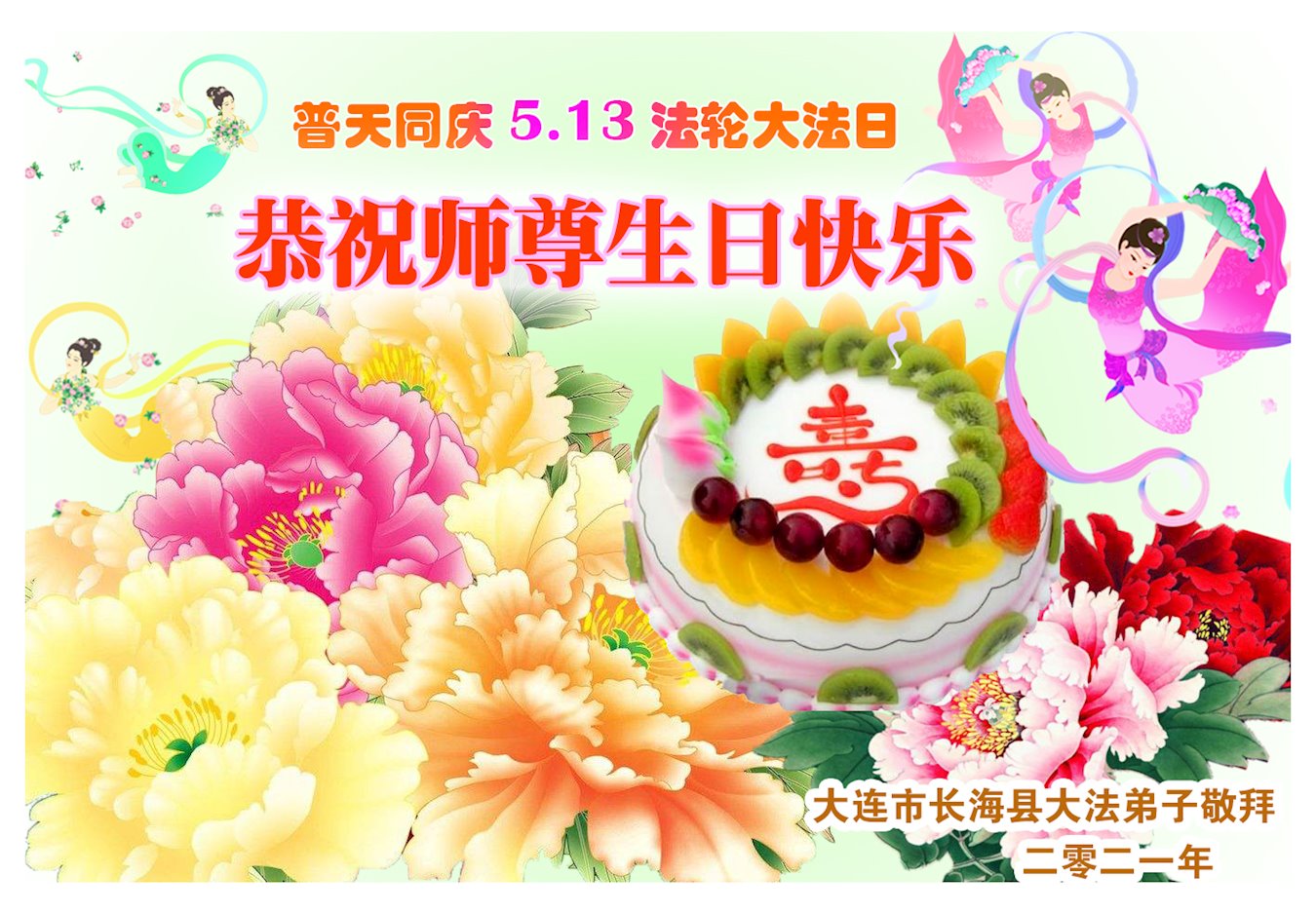普天同庆5.13世界法轮大法日! 大连长海县大法弟子恭祝师尊生日快乐! 二零二一年四月十四日 辽宁省大连市狱中大法弟子恭祝师父生日快乐!暨世界法轮大法日!