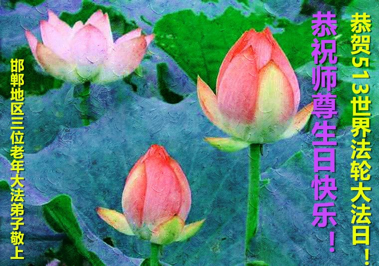 河北省邯郸地区三位老年大法弟子恭祝师尊生日快乐!恭贺法轮大法日!
