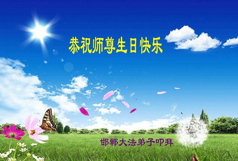 在所剩不多的随师正法路上,我们定要精進再精進,做好三件事,不负师恩,不负众生的期盼。 河北省邯郸大法弟子恭祝师尊生日快乐!