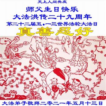 吉林省长春市九台市区一大法弟子恭祝师父生日快乐!庆祝5.13世界法轮大法日!庆祝法轮大法洪传世界二十九周年!
