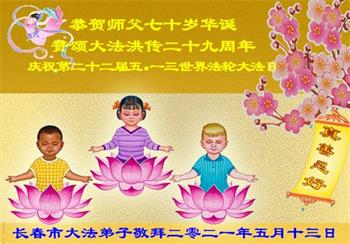 恭贺世界法轮大法日! 吉林省长春市大法弟子恭祝师尊生日快乐!庆祝5·13世界法轮大法日!