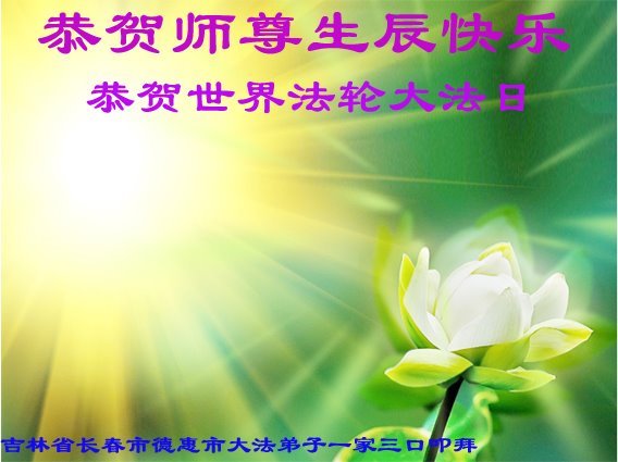 恭贺世界法轮大法日! 吉林省长春市德惠市大法弟子一家三口恭贺师尊华诞暨世界法轮大法日! 谢谢师尊慈悲救度! 2021年5月5日 吉林省长春市大法弟子及家人恭祝师父生日快乐!