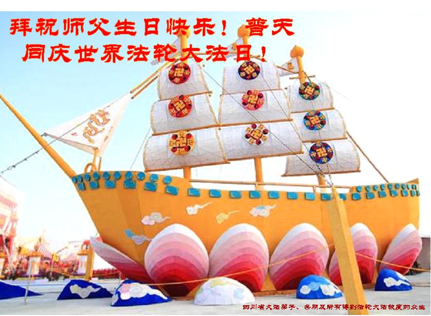 普天同庆世界法轮大法日! 四川省的大法弟子和所有得到大法救度的众生拜祝师父生日快乐! 普天同庆拜贺世界法轮大法日!拜贺师父传法二十九周年! 师父辛苦了! |