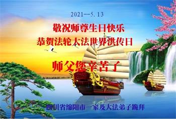 【明慧网二零二一年五月十一日】 四川省达州市达川区全体大法弟子恭祝师尊生日快乐!庆祝世界法轮大法日!