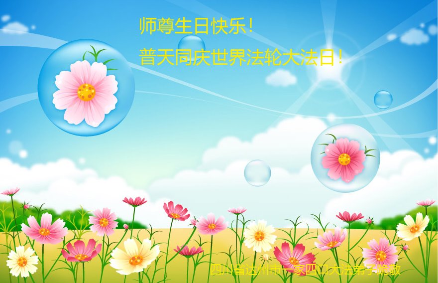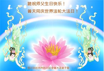 四川省的大法弟子和得到法轮大法救度的众生拜祝师父生日快乐!