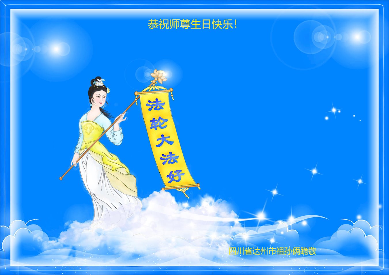 四川省达州市开江县大法弟子夫妻二人敬祝 四川省达州市大法弟子祖孙二人敬贺师父生日快乐!