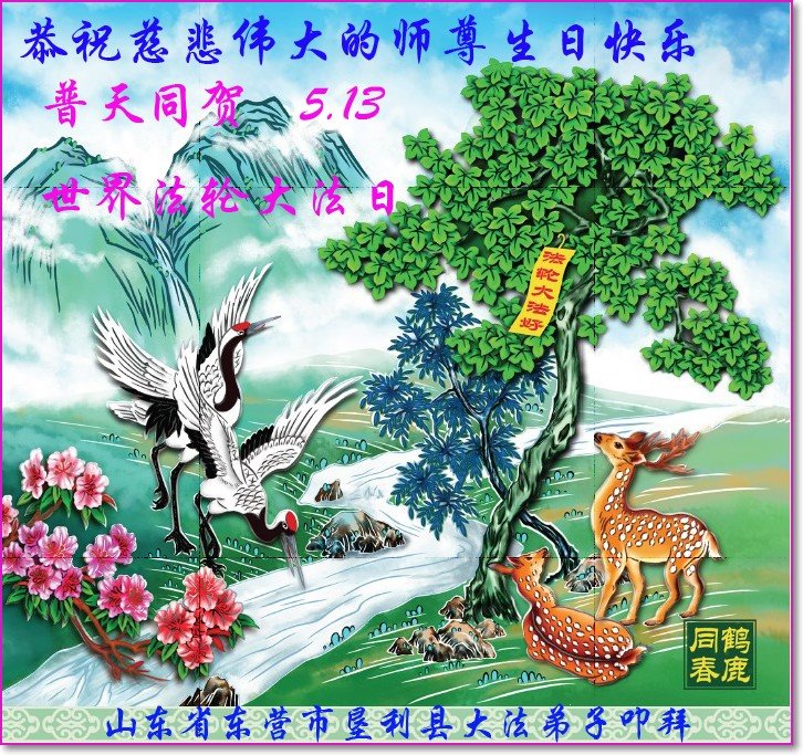 同贺世界法轮大法日!法轮大法好!真、善、忍好! 山东大法弟子贺师尊生日快乐!庆祝世界法轮大法日!