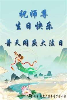 感恩师尊普度 师尊洪传真善忍 普度众生在凡尘 旧势乱神魔鬼狂 腥风血雨害善良 真善忍佛光普照 万古机缘现人间 师尊慈悲度众生 千辛万苦在人中 最高佛法真善忍 师尊一念苍宇新 师尊华诞佛光照 众生得救谢师恩 感恩师尊慈悲度 佛光普照展辉煌 山东大法弟子恭祝师尊生日快乐!