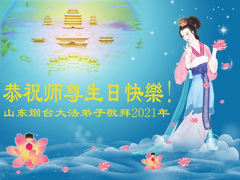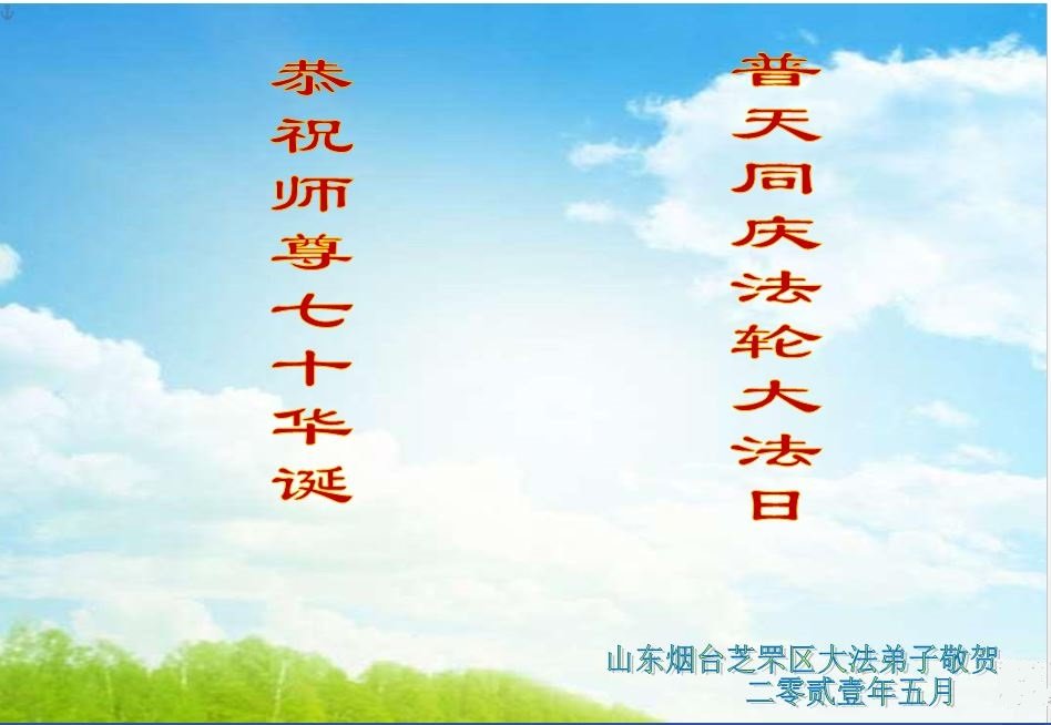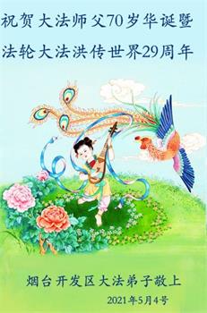 山东省烟台市芝罘区大法弟子恭祝师尊七十华诞暨世界法轮大法日!
