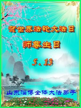山东淄博大法弟子恭贺法轮大法日!恭祝师父生日快乐!