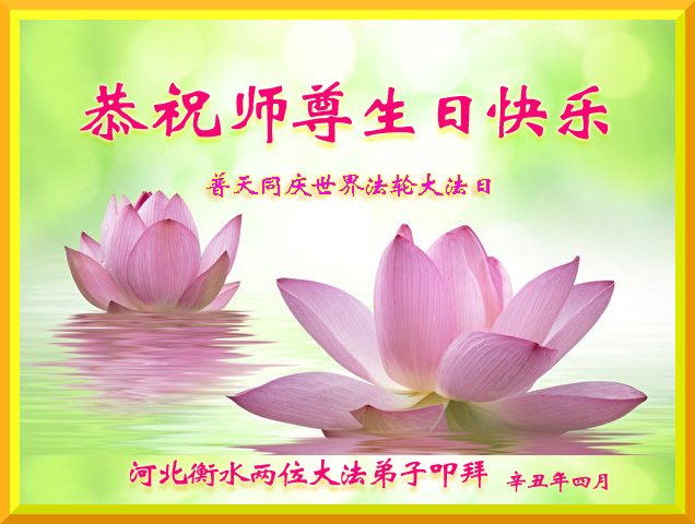 河北衡水两位大法弟子叩拜慈悲无量的师尊!恭祝师尊生日快乐!