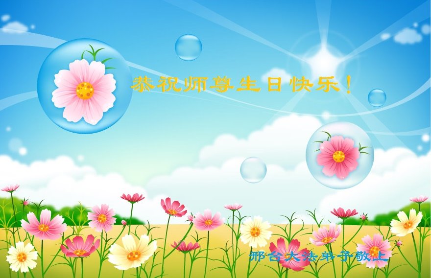 恭贺世界法轮大法日! 五月十三日,弟子:恭祝师尊生日快乐!期盼师尊早日回来!弟子想您! 跪拜师尊 河北省沧州市青县全体大法弟子恭祝师尊生日快乐!