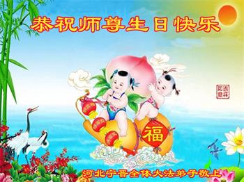 恭祝慈悲无量的师尊生日快乐!师尊辛苦了!修炼二十多年,越来越懂得修炼机缘的珍贵,更加感恩师尊的慈悲救度。在人中,我们吃了点苦,受了点罪,和师尊给予的、我们修炼得到的,根本无法相比。生命是如此的可贵,迷中的世人不知生命的意义又何尝不是迷在更苦中。谨记师尊教诲,修好自己多救人,跟随师尊圆满归家。 河北省白洋淀地区大法弟子恭祝师父生日快乐!